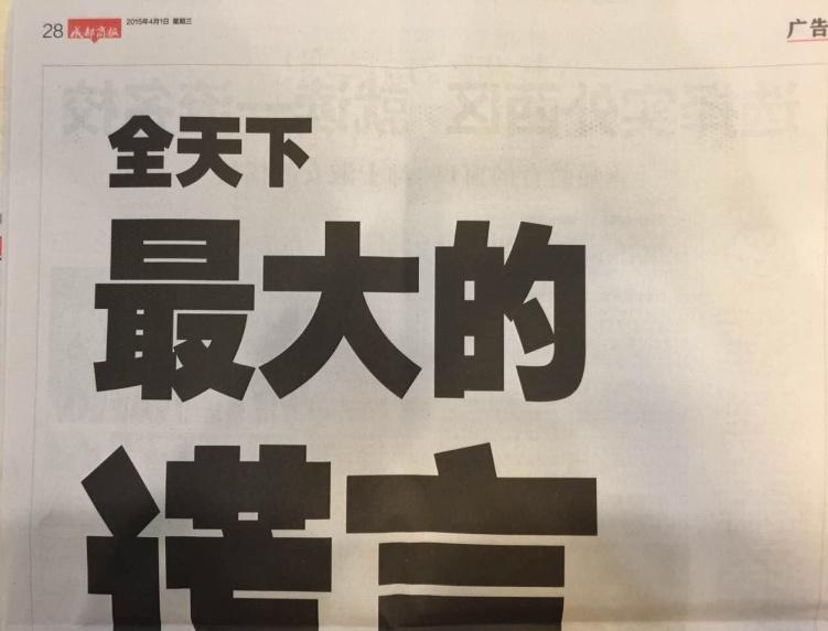 4月1日當(dāng)天,廣告整版出現(xiàn)在《成都商報》上,中午不少成都報刊亭即出現(xiàn)脫銷現(xiàn)象。一份報紙因為一個廣告竟然賣瘋了!