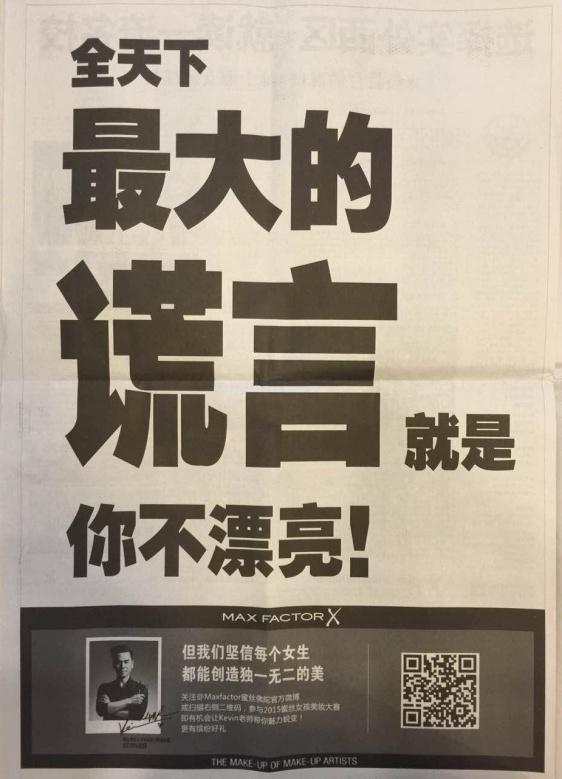 小編一路翻開報紙往下看,“世界上最大的謊言就是你不漂亮——但我們相信每個女生都有獨一無二的美。