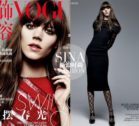 VOGUE Freja繼上個月《VOGUE》入選倒數榜后,本月又上榜。封面人物Freja是第二次登上中國版《VOGUE》,本次造型并無太大創意。標準的大頭照,微微的芭比長發和一身素裹的紅裝,也真是感恩于被外國模特撐起的摩登范兒,不信你換成中國標準式審美下的姑娘,誰敢說這不是教你化妝的推廣照。