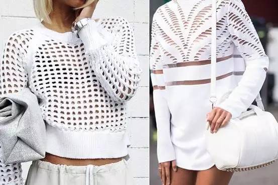 白色不只可以純潔,也可以性感,這一季不妨投資一些具透視設(shè)計(jì)感的服裝 (甚至是配件),上下身只要有一件較有設(shè)計(jì)感的服裝,整個(gè)人就立刻變得很有個(gè)性。