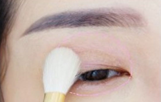 4.貼好雙眼皮后,將粉色眼影刷在整個上眼皮和臥蠶。
