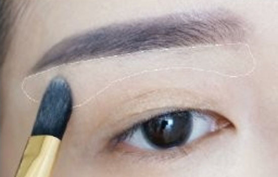 3.用粉底刷沾取遮瑕膏刷在眉尾下方,提亮眉尾下方眉弓處。