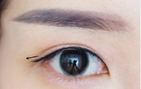 6.用眼線刷上剩余膏體畫下眼尾和眼頭。這樣會更顯眼圓哦。