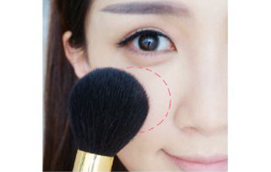 11.粉色腮紅以打圓的方式掃在蘋果肌上,腮紅面積稍大。