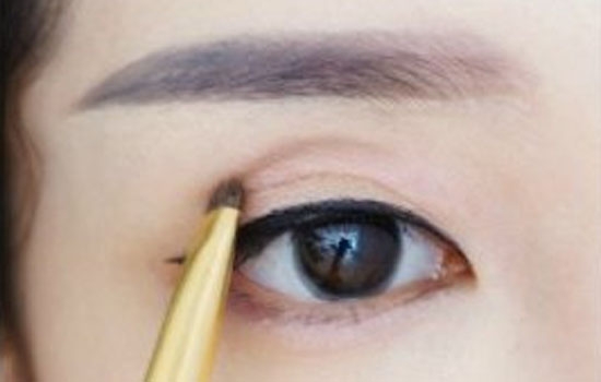 7.將深棕色眼影畫在眼窩處注意只畫眼球正上方一段哦。