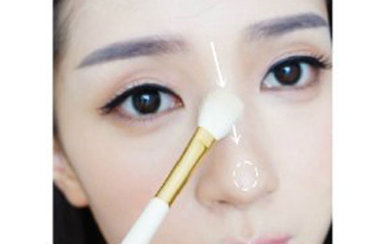 13.在鼻梁鼻頭位置掃上高光提亮,臉部的額頭、下巴也可以掃上一點高光提亮哈。