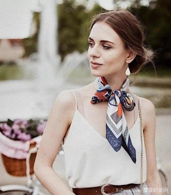 說起絲巾的各種圍法,就不得不說它的傳統的系在脖子上的圍法了,這種圍法很多變,有著各種結扣法。這種將絲巾當做項鏈的系法老少皆宜,將色澤萬千的絲巾化身為項鏈,纏繞在脖間,經典又優雅,實用又大方。