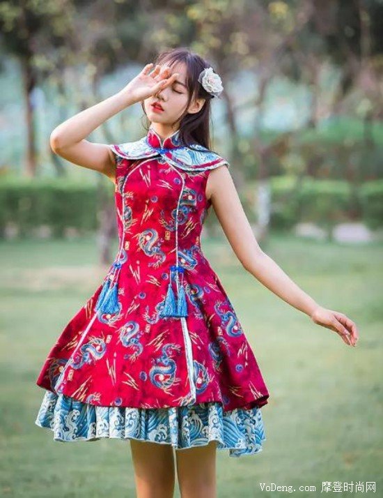 結合中國傳統服裝,借鑒旗袍等元素創作而成。