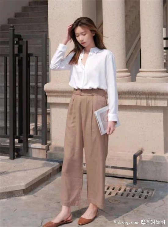 白色屬于是一種既經(jīng)典百搭,能夠完美解決你所有的穿搭難題;又是一種不失時尚感的顏色,韻味十足。用純白色上衣搭配卡其色褲子是一個明智的選擇,二者搭配起來顯瘦又顯高,如果你搭配的上衣是白色襯衫,那么這樣你既滿足了休閑需求,又體現(xiàn)出了你的職場女人味。