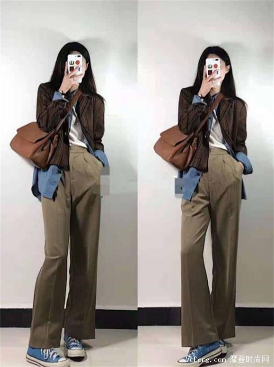 你可以想象一下落日時分,你身穿淺褐色上衣,下裝是卡其色褲子,再搭配上一雙小皮鞋,恬靜地看報、閱讀……是不是氛圍感十足!這種感覺就像是你的溫柔知性的鄰家姐姐,而且這種搭配也很協(xié)調(diào),是你不錯的選擇。