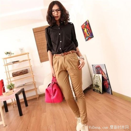 要說卡其色褲子配什么顏色上衣,我們不妨來拿它自己本身來搭配看看,結(jié)果就是十分適配,而且很有大女人的味道!疊穿的層次感也能讓你很有韻味,同時注意你的鞋子的顏色不能過于跳躍,不然就會破壞整體的協(xié)調(diào)感。