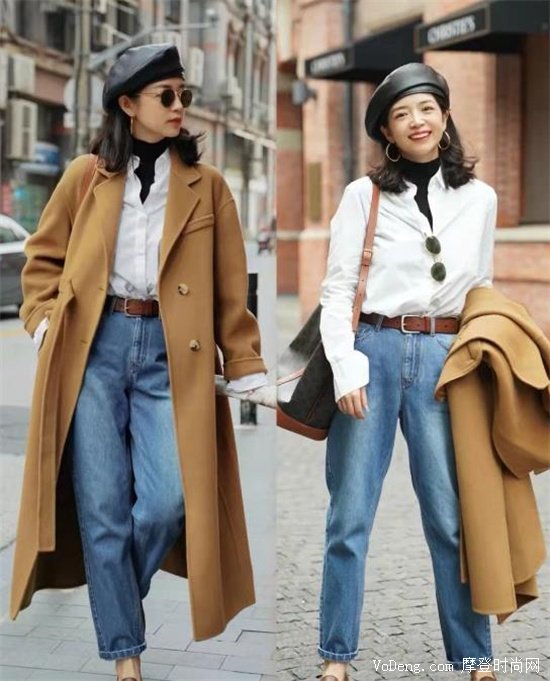 大衣和牛仔褲的搭配屬于是非常秋冬的萬能搭配了。大衣是十分氣質的存在,二者的巧妙搭配能讓你很有女人味,帶上墨鏡,簡直是秋日女神級別的存在!