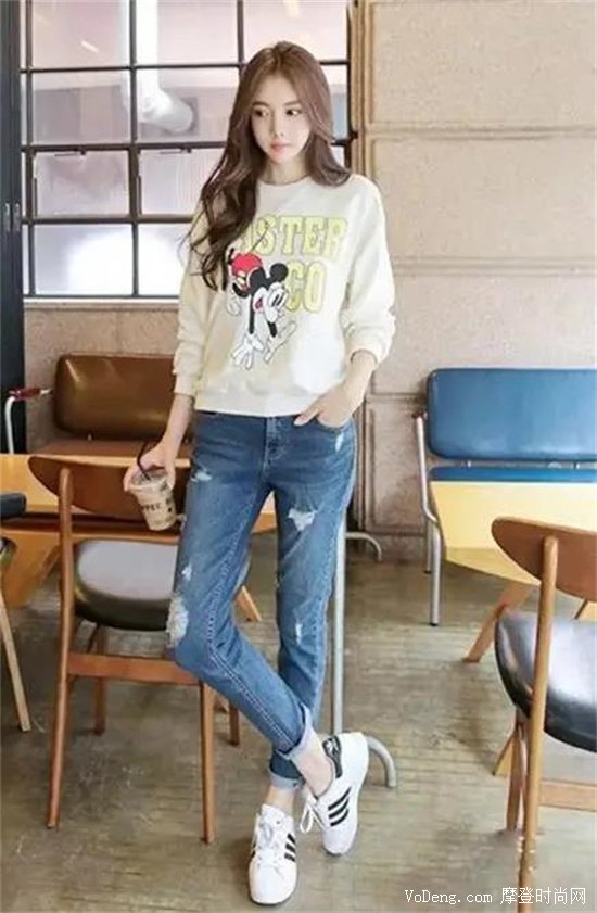 牛仔褲作為一件怎么搭配都會很好看的時尚單品,你和什么風格的上衣搭配都沒什么問題的,盡可以放心去嘗試。