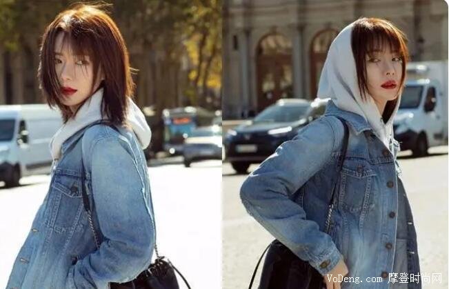 這款發型正是宋茜平時的發型,這款發型的一刀切的側分,看人看起來干凈又利落,時尚又有魅力,氣場爆炸,一點都不顯老,但是這款發型對耳環的搭配也有要求。