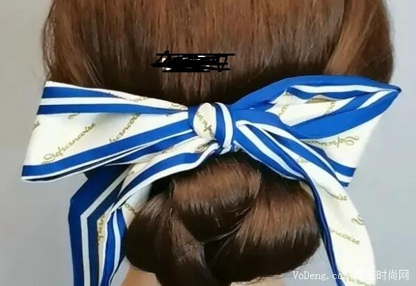 很多人扎低盤發的時候都綁的特別緊,這樣看起來像個丫鬟一樣,先扎一個松散隨意的低麻花辮,在最后麻花末端,將發尾收進去,最后再使用一根發帶穿過橡皮筋,向上盤起來,再將發帶系好就行了。