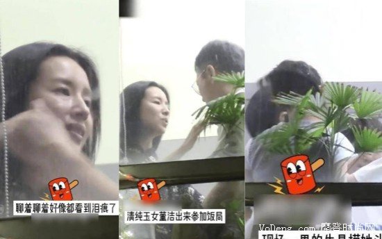 2、二人聊天不只是說到了什么,董潔的臉上掛著淚痕,該男子見狀就連忙摸頭安慰,二人眼神充滿愛意,網友紛紛調侃二人指定是情人關系。