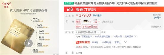 1、黃金肌肽蜂窩金剛俠面膜——179元/30片