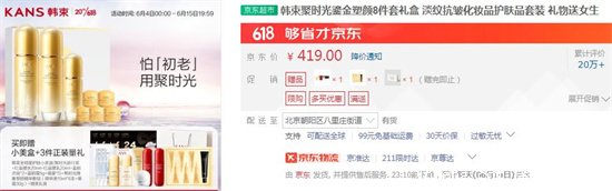韓束家的護膚產品價格都十分低廉,因此很適合預算不多的姐妹們選購。最低價格的聚時光臻奢緊致旅行三件套也才19.9元;而最貴的聚光白美白淡斑9件套,僅售439元,而且券后只有419元,還送你22件贈禮,十分劃算,可以說是良心國貨。