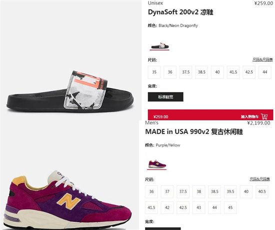 目前在New balance的中國(guó)官網(wǎng)中,在售的最低價(jià)格的成人款鞋子是DynaSoft 200v2 涼鞋,售價(jià)為259元,而最高價(jià)的是MADE in USA 990v2 復(fù)古休閑鞋,售價(jià)2199元。作為全球范圍內(nèi)的高端鞋牌,盡管它家的在售的商品價(jià)格對(duì)于一般人來(lái)說(shuō)還能接受,但是它也有一些高端產(chǎn)線,是限量發(fā)售的,價(jià)格還是十分高昂的。