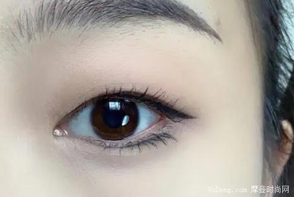 因為單眼皮是往里面凹陷達到,所以在畫內眼線的時候,可以盡量畫的粗一點,不要怕畫的過于粗了,只要多聯系幾次就行了,從眼頭到眼尾都貼著睫毛根部,當畫到眼尾的時候,往下拉1厘米,然后使用暈染刷或者棉簽暈染開,這樣眼睛不僅放大了很多,而且看起來也非常自然。