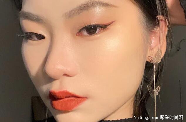 這款眼妝適合濃妝,如果你有party,最適合這個眼妝,看起來非常魅惑,先從眼尾末端開始,往上畫一條1厘米的延長線,再從眼睛中間睫毛根部起筆,向后畫出延長線,與之前那根線末端相交,然后將中間空白的地區填滿就行了。