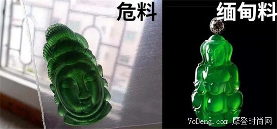 危料翡翠大多是微微透明或者是不透明,而透明的危料翡翠不是很常見,而翡翠的透明度就很多樣了,質量較好的品種翡翠多是透明的。