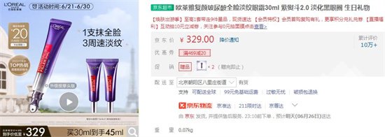 4、歐萊雅復顏玻尿酸眼霜——329元