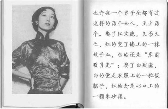 白月光和朱砂痣其實來源于小說家張愛玲,她在《紅玫瑰與白玫瑰》中寫到了“也許每一個男子全都有過這樣的兩個女人,至少兩個。娶了紅玫瑰,久而久之,紅的變了墻上的一抹蚊子血,白的還是‘床前明月光’;娶了白玫瑰,白的便是衣服上的一粒飯粘子,紅的卻是心口上的一顆朱砂痣。”。