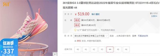 361°價格最貴的就是BIG3 4.0PRO籃球鞋男鞋緩震訓練運動鞋子,989元一雙,但是券后只要639元;而最便宜的是軌跡4.0龔俊同款護臂戶外休閑防曬男女同款612336001-1,要49元。