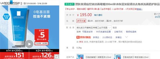 3、理膚泉清痘控油潔面啫喱200ml——195元