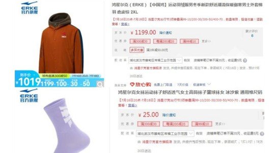 鴻星爾克的服飾定價都是非常親民的,而在設計與質量上又做的很好,整體性價比極高。最貴的中國鴻運動羽絨服男冬季新款,一件要1199元;但是它家的女襪運動襪子舒適透氣女士高筒襪子,一雙只要25元。