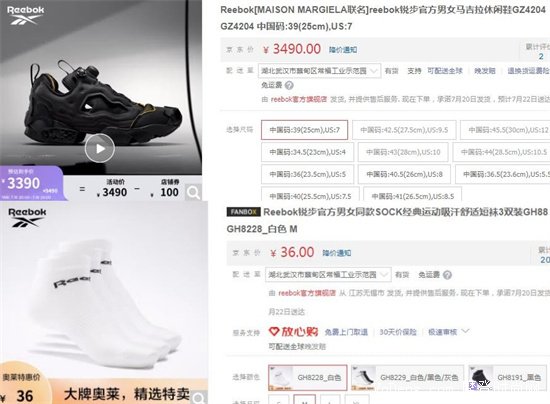銳步的價格還算親民,最貴的馬吉拉休閑鞋GZ4204,要3490元一雙,而它家最便宜的是SOCK經典運動吸汗舒適短襪3雙裝,才36元。