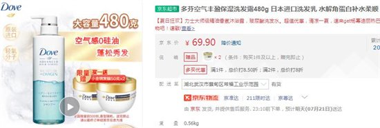 1、多芬空氣豐盈保濕洗發露480g——69.9元