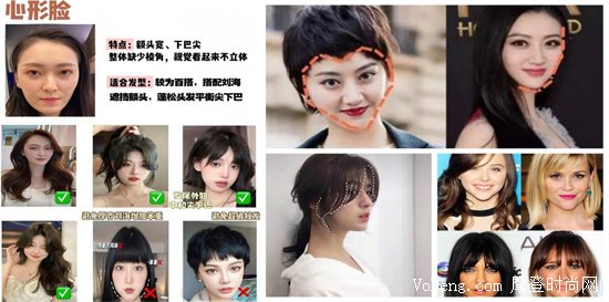 在發(fā)型設(shè)計與臉型搭配中,首先來講講心形臉。所謂心形臉,就是指臉型很像一顆愛心的臉,具體來說就是額頭太寬、下巴太尖,像一個倒三角形,但是又有美人尖。這種臉型需要適當(dāng)遮蓋住不太完美的額頭,適合剪有空氣感的劉海修飾額頭。千萬別剪超級短發(fā),或者是太厚的齊劉海,這樣就太老氣了。