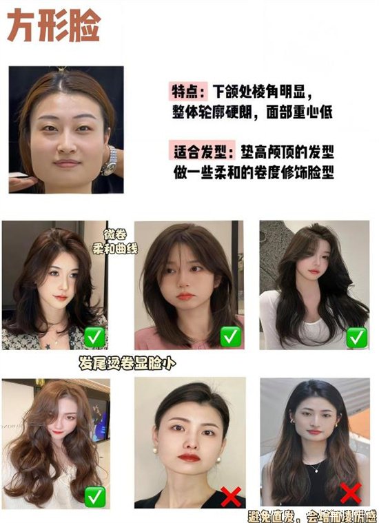 方形臉通常是臉型過于方正,下頜拐角很明顯,輪廓線條比較生硬。那么方臉的姐妹們就可以選擇有弧度的卷發(fā),來將你的面部線條柔和,同時高顱頂也很重要。