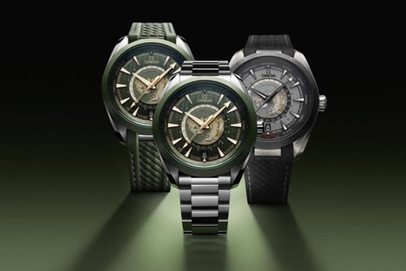 作為環球旅行的必備工具,歐米茄海馬系列Aqua Terra世界時腕表是最漂亮,也是最有趣的選擇。2023年歐米茄推出三款世界時新作中的鈦金屬款最為引人入勝。43毫米的表殼采用輕巧且耐腐蝕的2級鈦金屬打造,搭配經過拉絲工藝處理的黑色陶瓷表圈。黑灰色表盤中央呈現從北極上空俯瞰地球的精美圖案,并以激光燒蝕技術雕刻出陸地輪廓與色彩。 內表盤外側設有24小時刻度環,指示世界各地的時間,并以深淺色的刻度區來顯示夜晚和白天。腕表搭配一體式黑色橡膠表帶,表扣采用2級鈦金屬制成,令腕表的整體風格大膽前衛且兼具運動風尚。