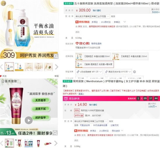 五十惠曼秀雷敦洗育套裝清爽型是它家最貴的產品,一套要309元;而最便宜的就是它家的護甲潤手霜50g了,只要14.9元一瓶。