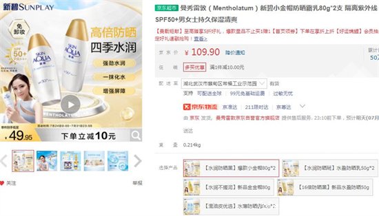 1、新碧小金帽防曬霜乳80g兩瓶——109.9元