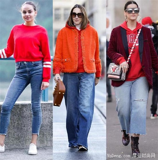 紅色與藍(lán)色的組合,本來就是種比較時髦的的搭配。而紅色衛(wèi)衣與藍(lán)色牛仔褲的搭配,風(fēng)格就比較百變。你可以是運(yùn)動達(dá)人,也可以是時髦博主,也可以是奢華貴婦……