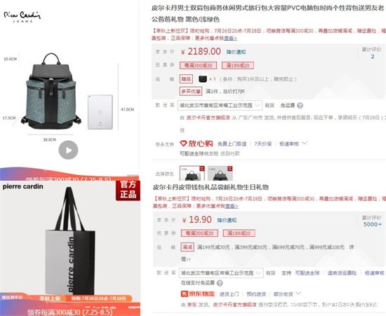 它家最貴的是男士雙肩包商務休閑男式旅行包,一個要2189元;而最便宜的是皮帶錢包禮品袋,一個要19.9元。