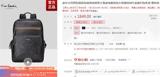 這款背包是皮爾卡丹家的銷冠單品,采用的真皮設計,整體風格比較商務化,容量很大,比較適合男士。