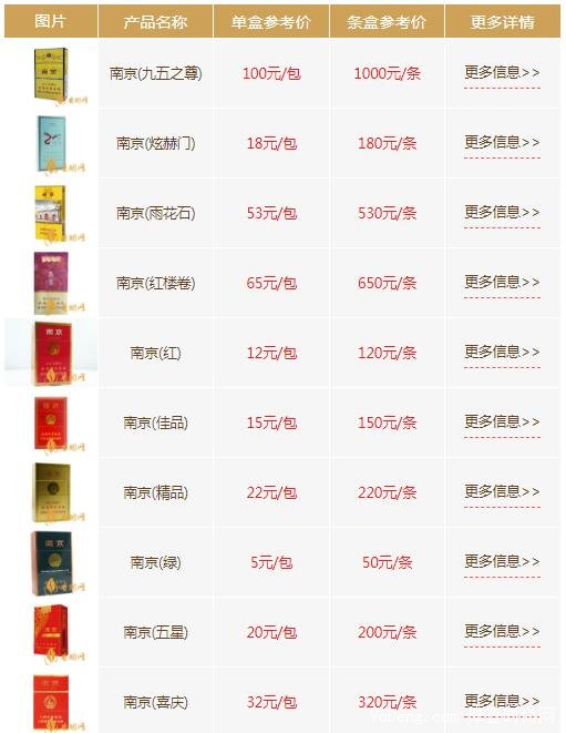 南京煙是許多人都非常喜歡的一種煙,不少人都想購買南京煙,但是許多人都不知道南京煙的價格,今天就給大家帶來了南京煙圖片大全價格表,幫助大家了解南京煙多少錢一包。