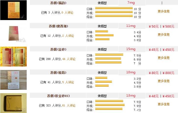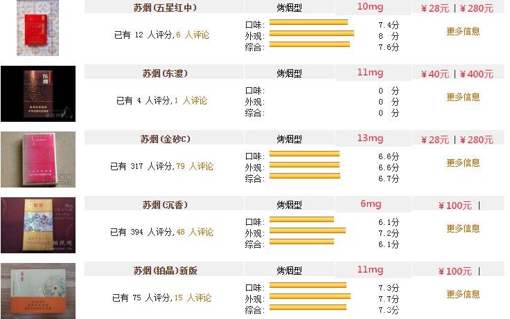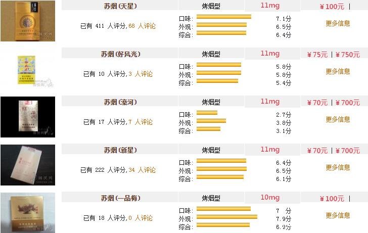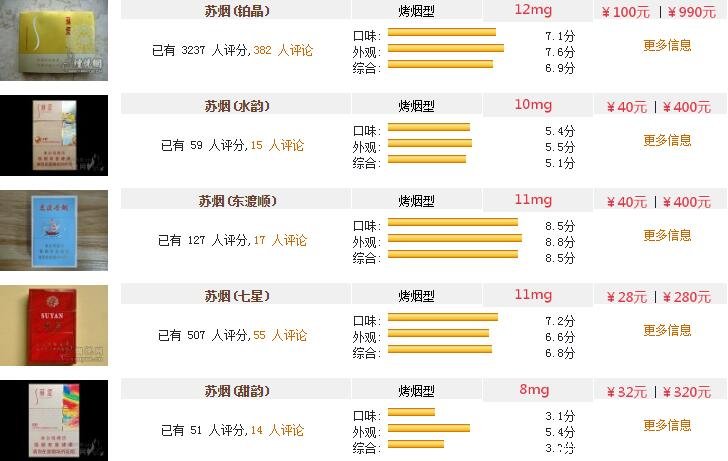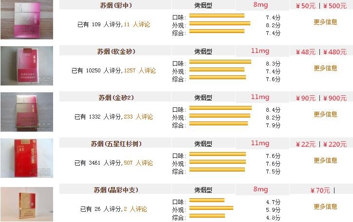 蘇煙全部系列價格表