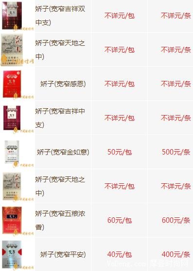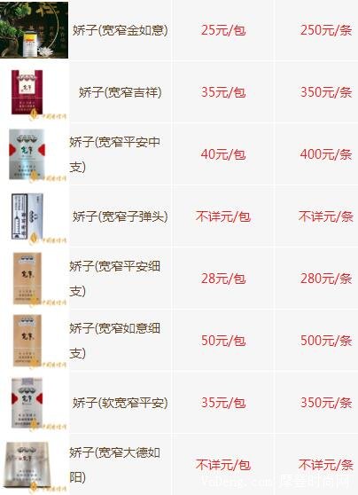 2024最新寬窄香煙價格表圖大全