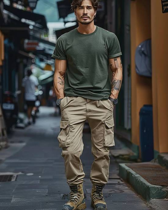 想穿出文藝復古調?卡其色必須擁有姓名!藏藍和卡其像咖啡配牛奶,溫暖又高級。試試藏藍工裝風衣配卡其休閑褲,卷起褲腳露出腳踝,再背個帆布包,松弛感滿分;秋冬換成藏藍毛衣搭巧克力色闊腿褲,垂感面料配帆布鞋,暖咖色系直接把秋冬氛圍感焊在身上 。