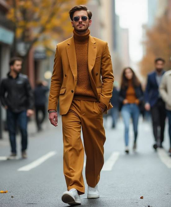橙色撞藍是博主們的秘密武器。南瓜橘T恤配深藍工裝褲,活力滿滿還顯白。小面積嘗試更安全——橙色腰帶或包包點睛,比全身印花高級多了。